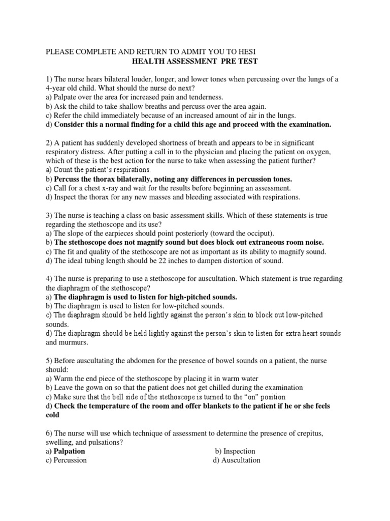 Hesi Health Assessment 2015 2018 Nursing Study Guides Test Review